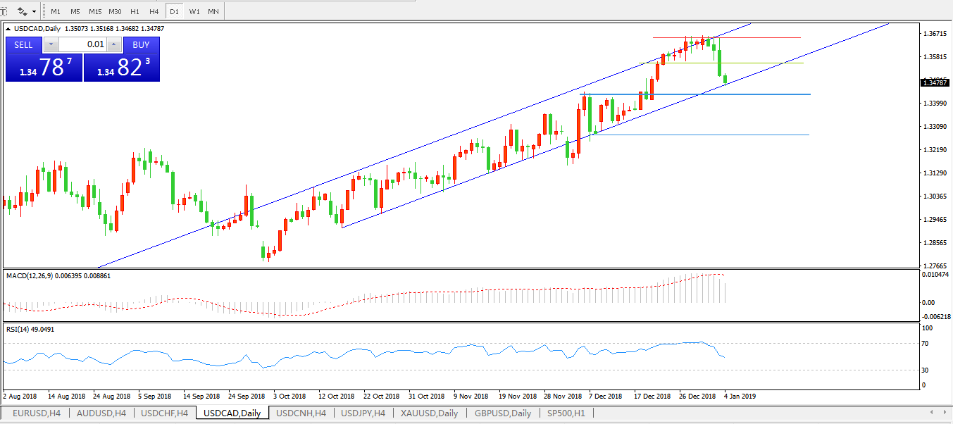 美元兑加元USDCAD 日线图