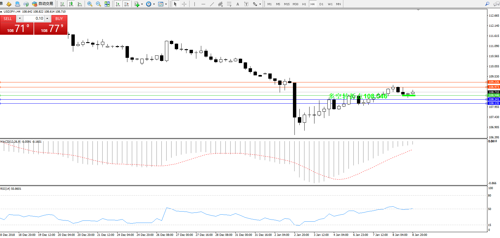 交易策略:108.546上方看涨,目标108.973109.226