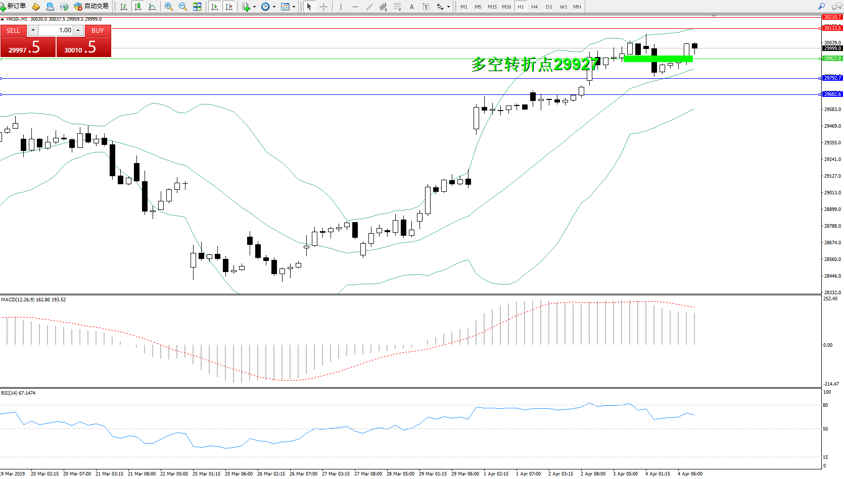 交易策略:29927上方看涨,目标30133、30210