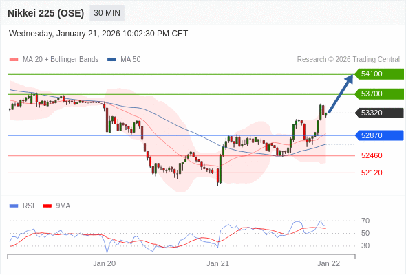 在 52870 之上,看涨,目标价位为 53700 ,然后为 54100 。