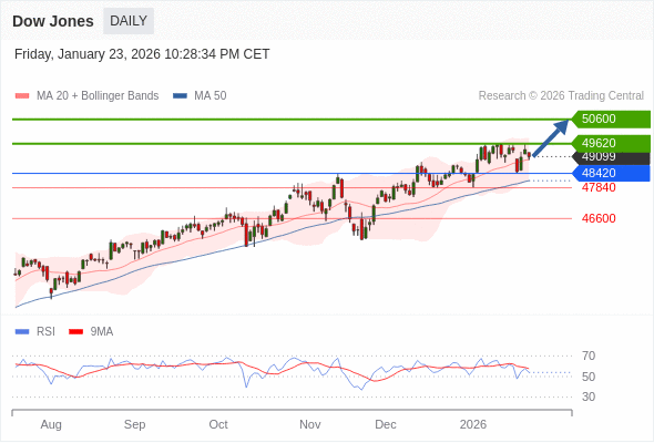 Dow Jones 短线: 新一轮上升。