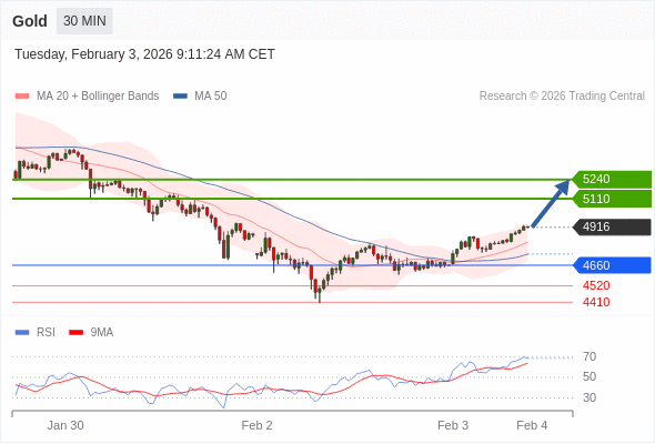交易策略: 在 4660 之上,看涨,目标价位为 5110 ,然后为 5240 。