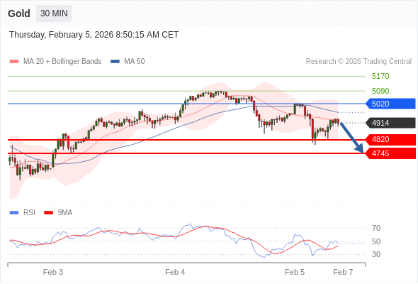 在 5020 之下,看跌,目标价位为 4820 ,然后为 4745 。