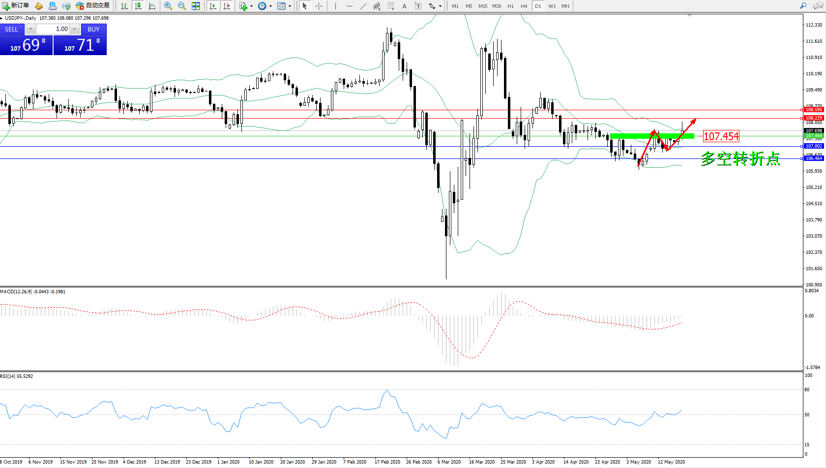 多空转折点:107.454