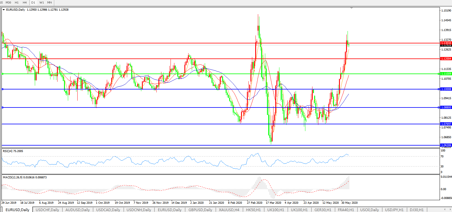 大华银行讨论了欧元兑美元的技术性前景,预期其将在未来数周内进一步向着1.1660上涨。欧元兑美元在目前的1.1340水平,月度指数平滑移动平均线 (MACD)已经交叉进入正面领域。然而,唯有在接近6月底才能确认看涨交叉;欧元兑美元的月度指数平滑移动平均线交叉并不寻常,可以作为长期触底或登顶的可靠信号。目前的涨势开始于大约两周前,目前已经迅速逼近周趋势线阻力位1.1390。如能突破这一水平将大幅提升欧元兑美元突破3月份高位1.1496的可能性。展望未来,下一个中长期阻力位水平位于1.1660。这一水平为月趋势线,如欧元兑美元可以突破这一阻力位,将或多或少确认3月份低位1.0635位主要的长期底部,也就是说,1.0635位置在未来数月内都可能不会再度出现。
