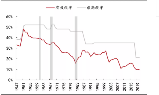 历史上,加税或加税预期引致的企业盈利回落预期在历史上也曾导致过 4 轮牛熊转换的发生,当前拜登加税政策的推进将进一步导致美股盈利承压。