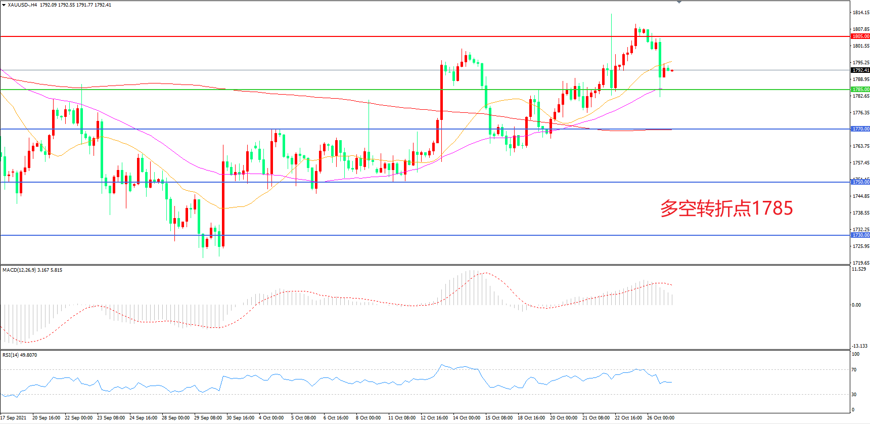 多空转折点:1785.00