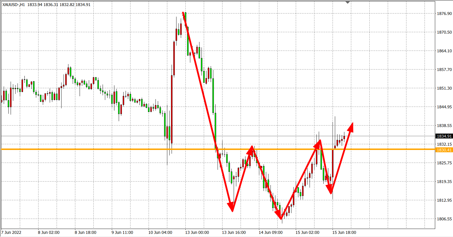 现货黄金XAUUSD 1小时图