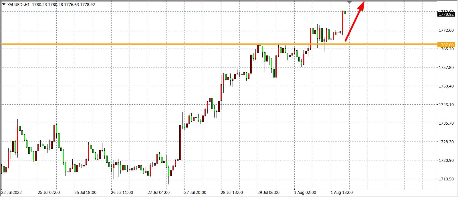 交易策略:在1767.00之上看涨,目标1785.00           1800.00