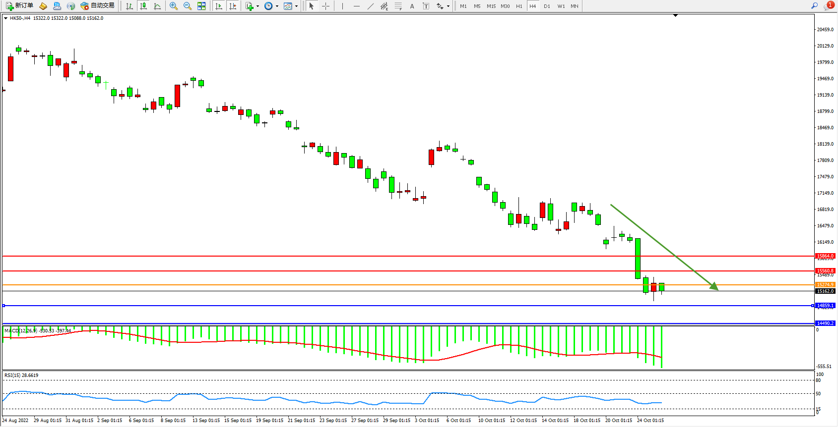 恒指HK50 4小时图