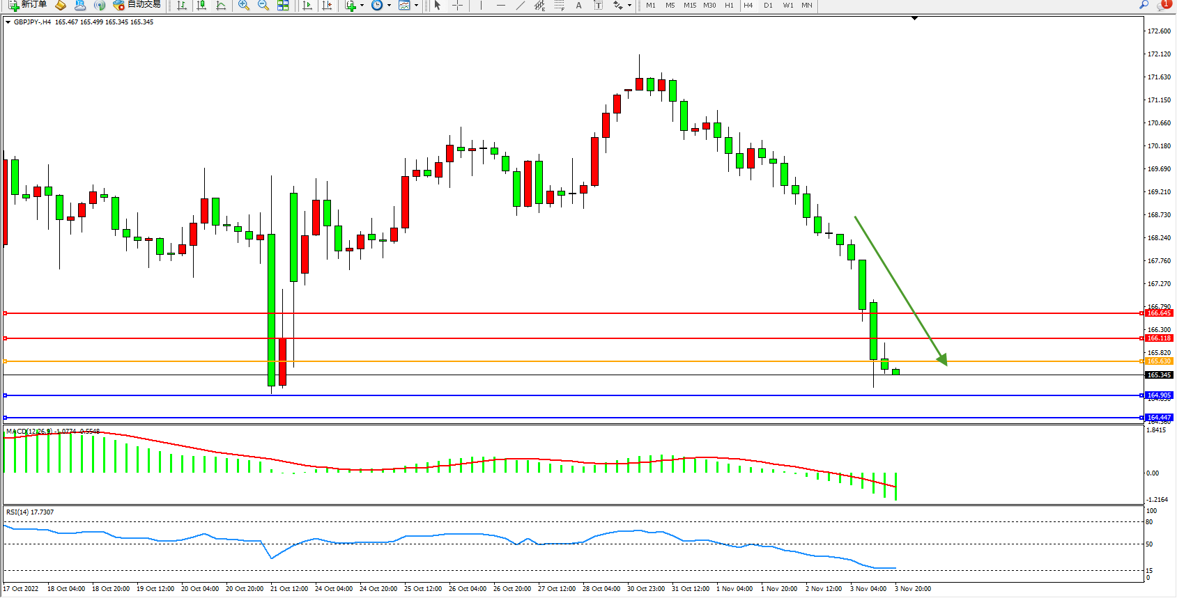 交易策略:165.630下方看跌,目标164.905、164.447